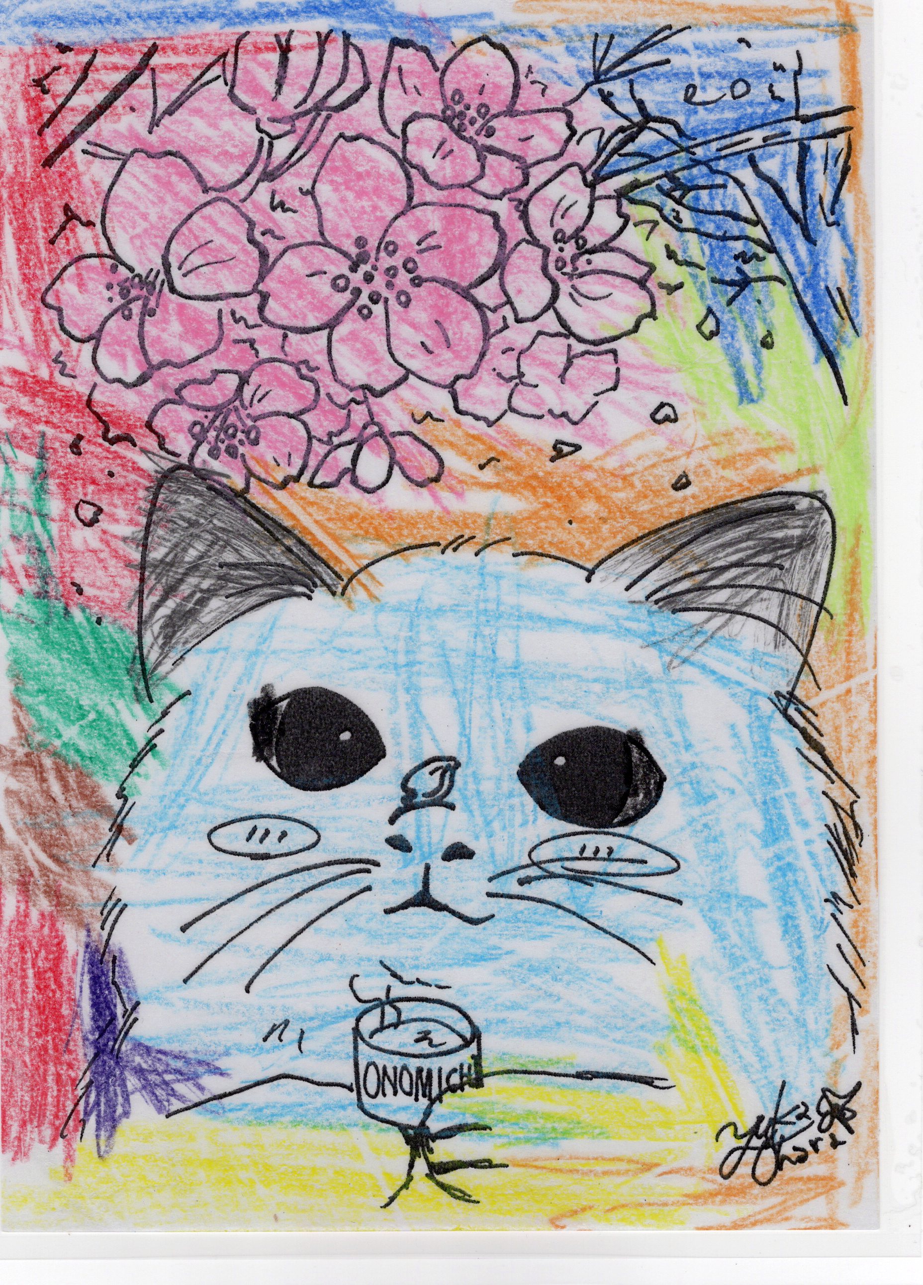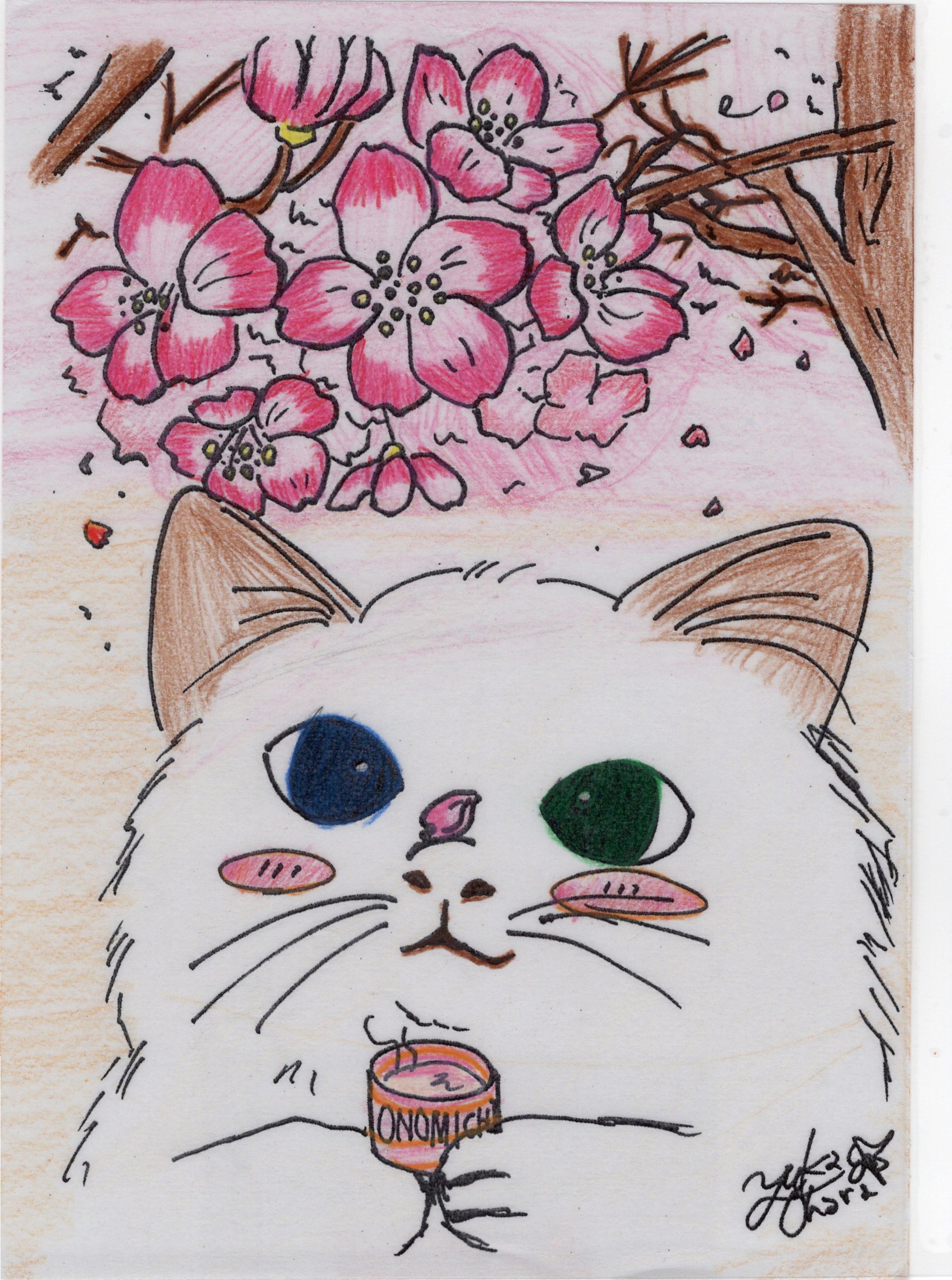 大原さんより…桜はしっかり描き、春を感じます。両目の色を変えて、湯飲みは柄を描いて見るほど面白かったです。