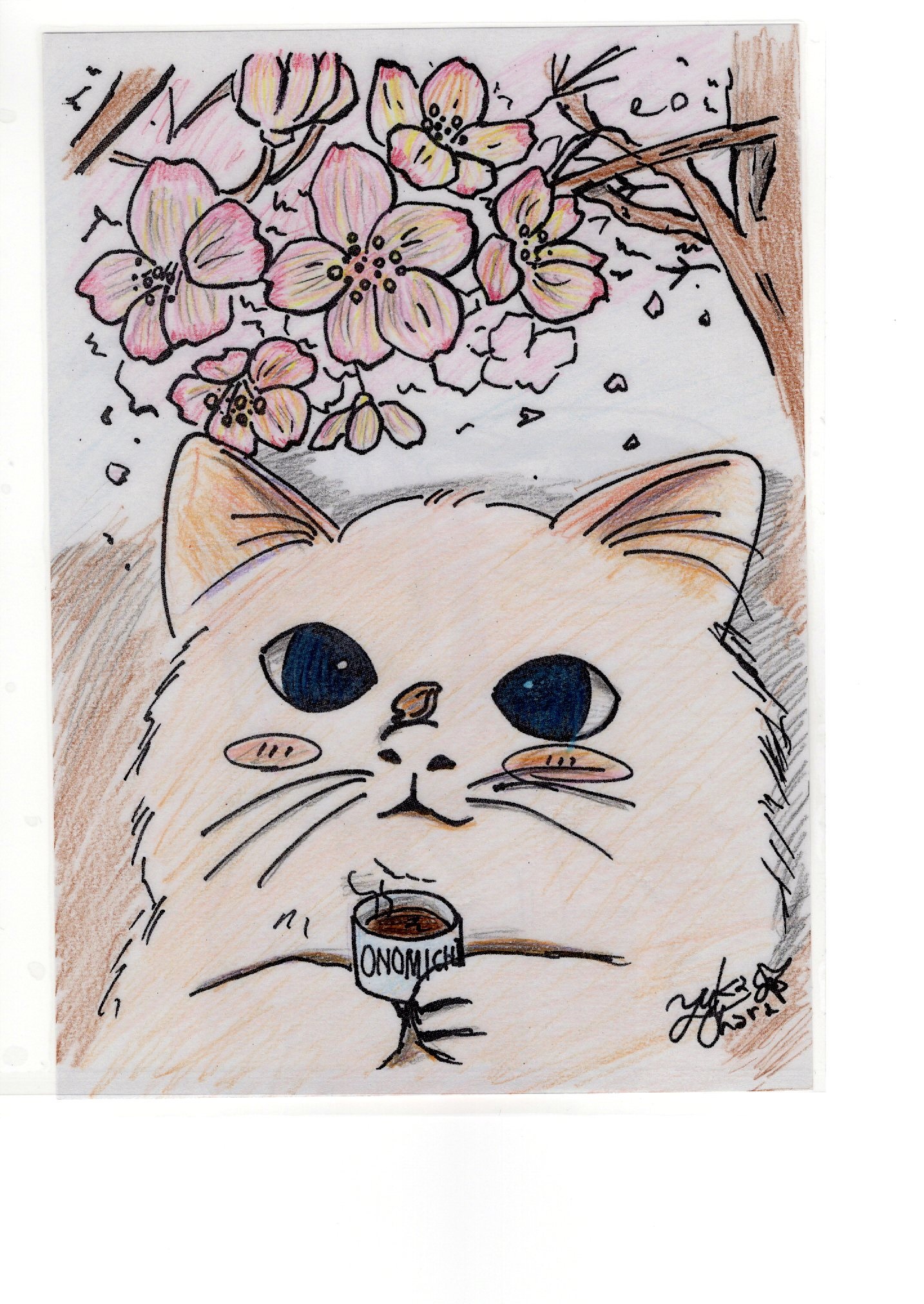 大原さんより…桜はしっかり描き、春を感じます。両目の色を変えて、湯飲みは柄を描いて見るほど面白かったです。