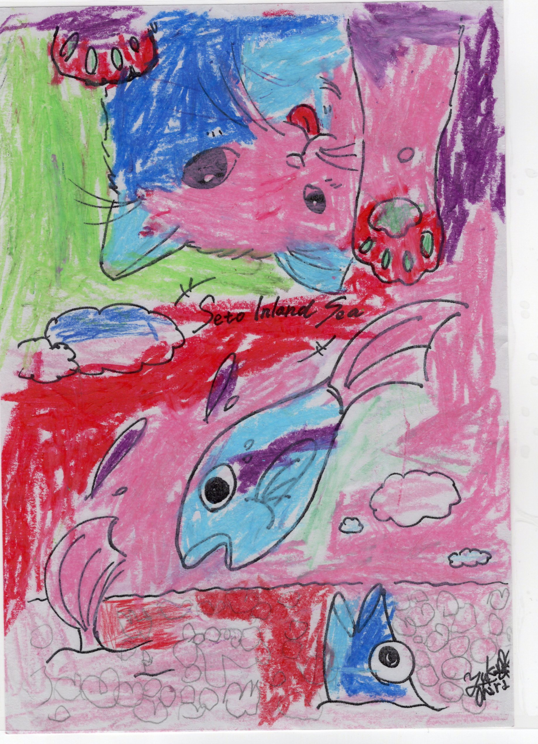 大原さんより…猫の毛並みをカラフルに描き、空と海の色を合わせて反射して、海の中も細かく描けていました。