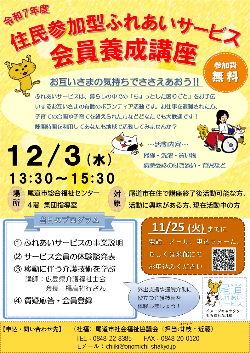 住民参加型ふれあいサービス会員養成講座を開催します